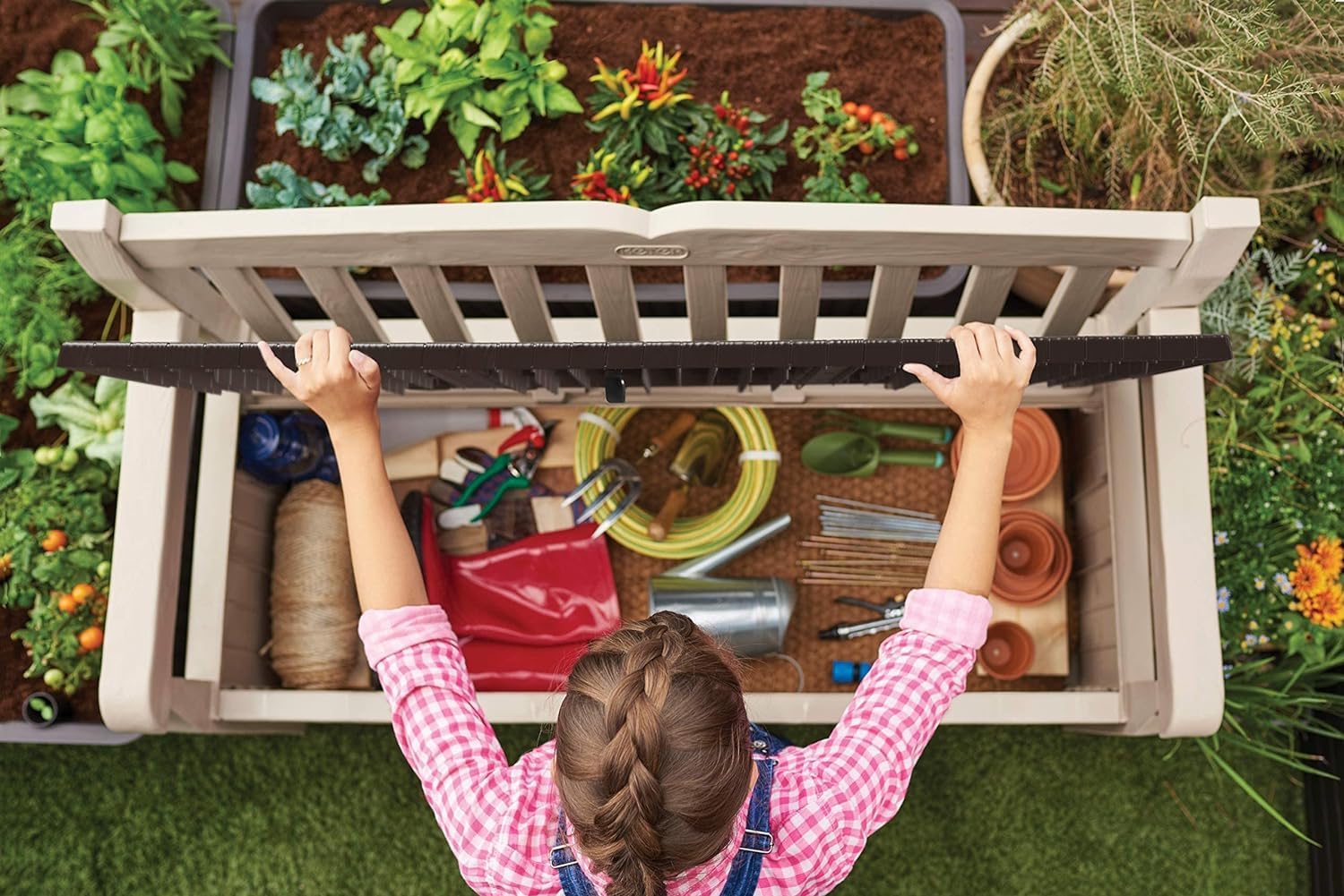 You can never have too much outdoor storage or too many pieces of durable yet elegant outdoor furniture. The fully weather-resistant Eden garden bench storage box is ideal for use outdoors and can provide seating for up to two adults, and store a 265 L/65 G capacity worth of patio accessories, lounge cushions and anything else that needs to be kept dry and well ventilated. As well as its decorative wood – style finishing the Eden bench is also lockable to give you added security and peace of mind.