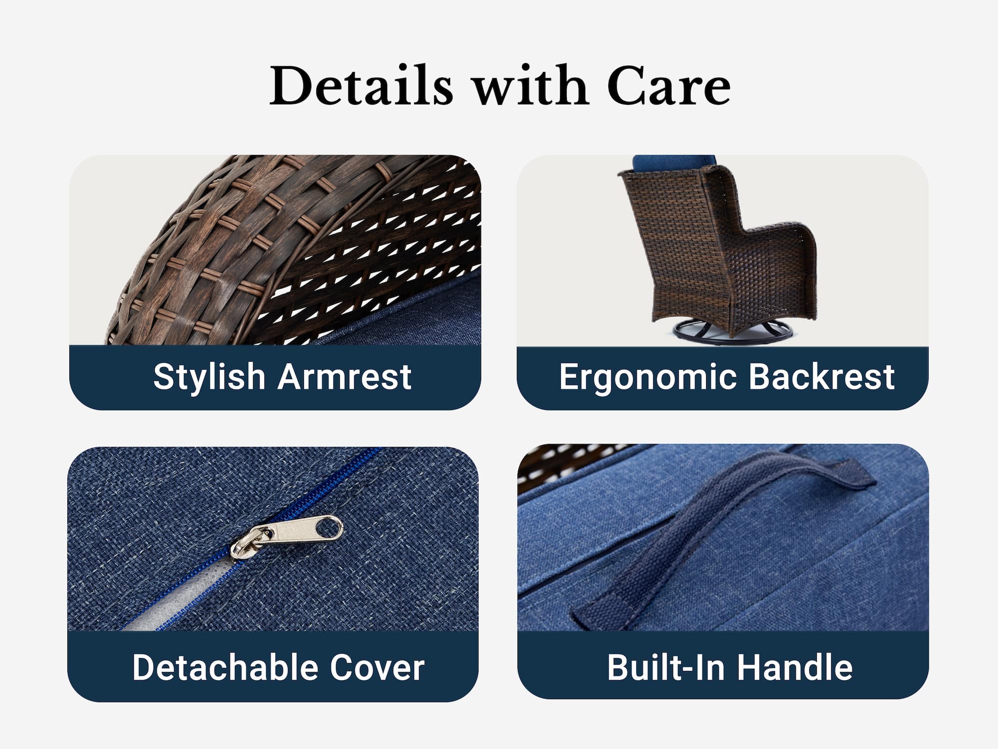 Blue Cushion / Brown Wicker, Cream White Cushion / Brown Wicker, Beige Cushion / Brown Wicker, Dark Gray Cushion / Brown Wicker, Weathered Brown With Sand Cushions