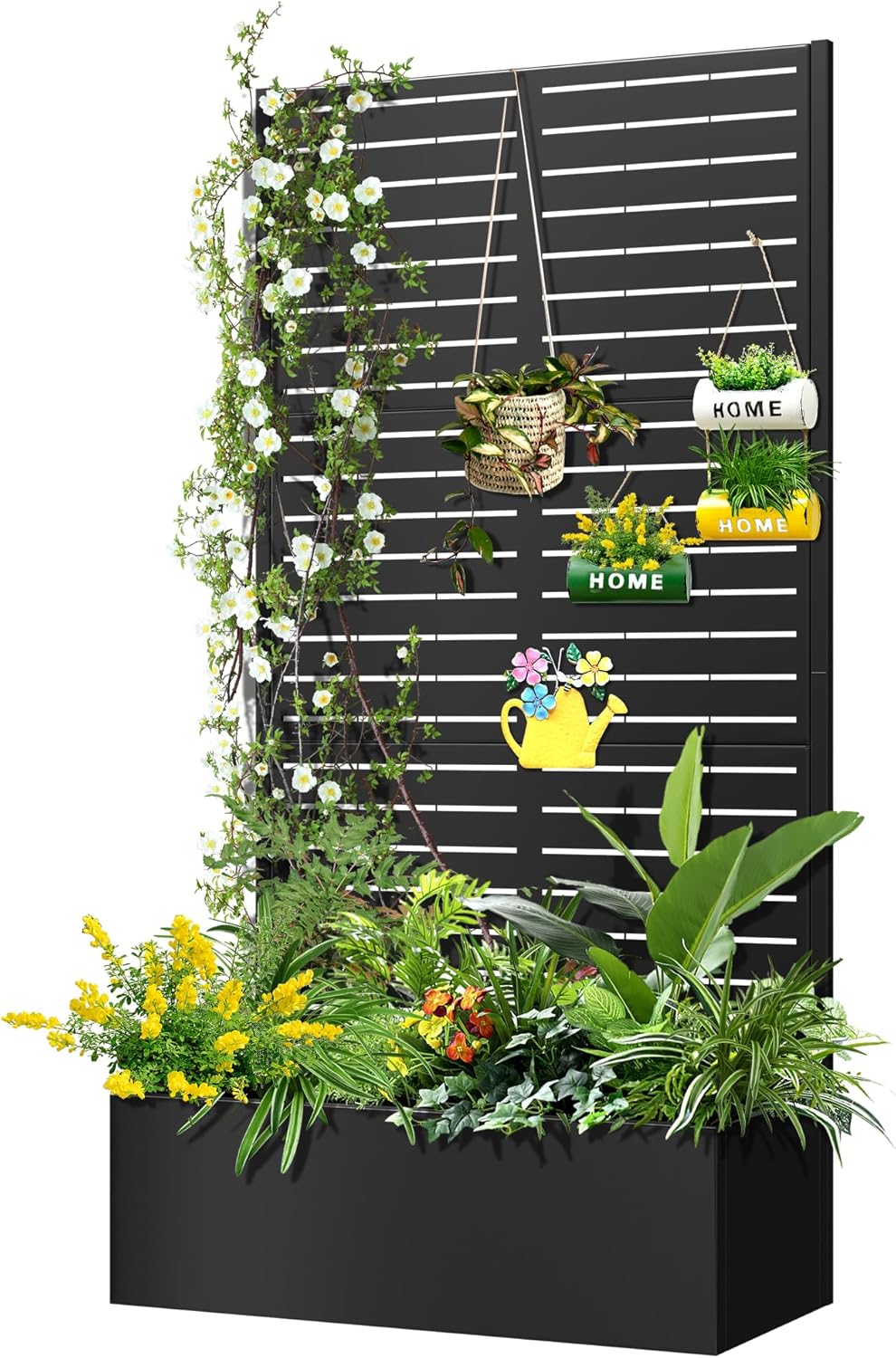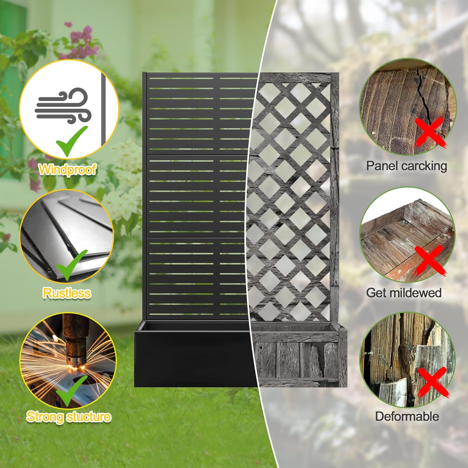 Exceptional Durability and Weather Resistance: Crafted from sturdy metal materials, this garden planter box with trellis outperforms traditional wooden alternatives. It boasts exceptional durability and can withstand the harshest weather conditions, ensuring it stands the test of time. The metal construction also provides added strength and stability, making it suitable for supporting a variety of plants, including climbing vines and tall flowers. Whether you’re planting herbs, vegetables, or ornamental plants, this metal planter box with trellis offers a versatile and long-lasting solution for your gardening needs. Its weather-resistant properties make it an ideal choice for outdoor use, allowing you to enjoy a beautiful and thriving garden year-round.