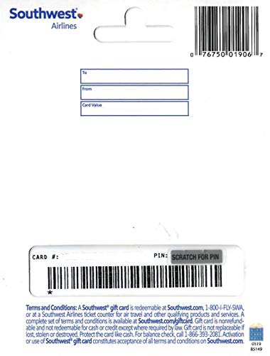 A southwestgiftcard is redeemable at southwest.com, 1-800-I-FLY-SWA, or at a Southwest Airlines ticket counter for air travel only. A southwestgiftcard is not valid for the purchase of Southwest Vacation Packages, Cargo, Hotel, Rental Car, or Group Tickets. Only four total forms of payment, including southwestgiftcards, may be combined per purchase. Gift card is nonrefundable and not redeemable for cash or credit except where required by law. Gift card is not replaceable if lost, stolen or destroyed. Protect the card like cash. For balance check, call 1-866-393-2081. Activation or use of southwestgiftcard constitutes acceptance of all terms and conditions on southwest.com.
